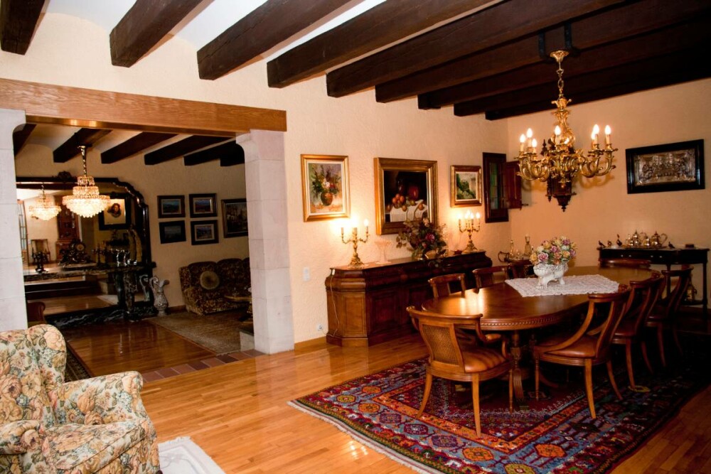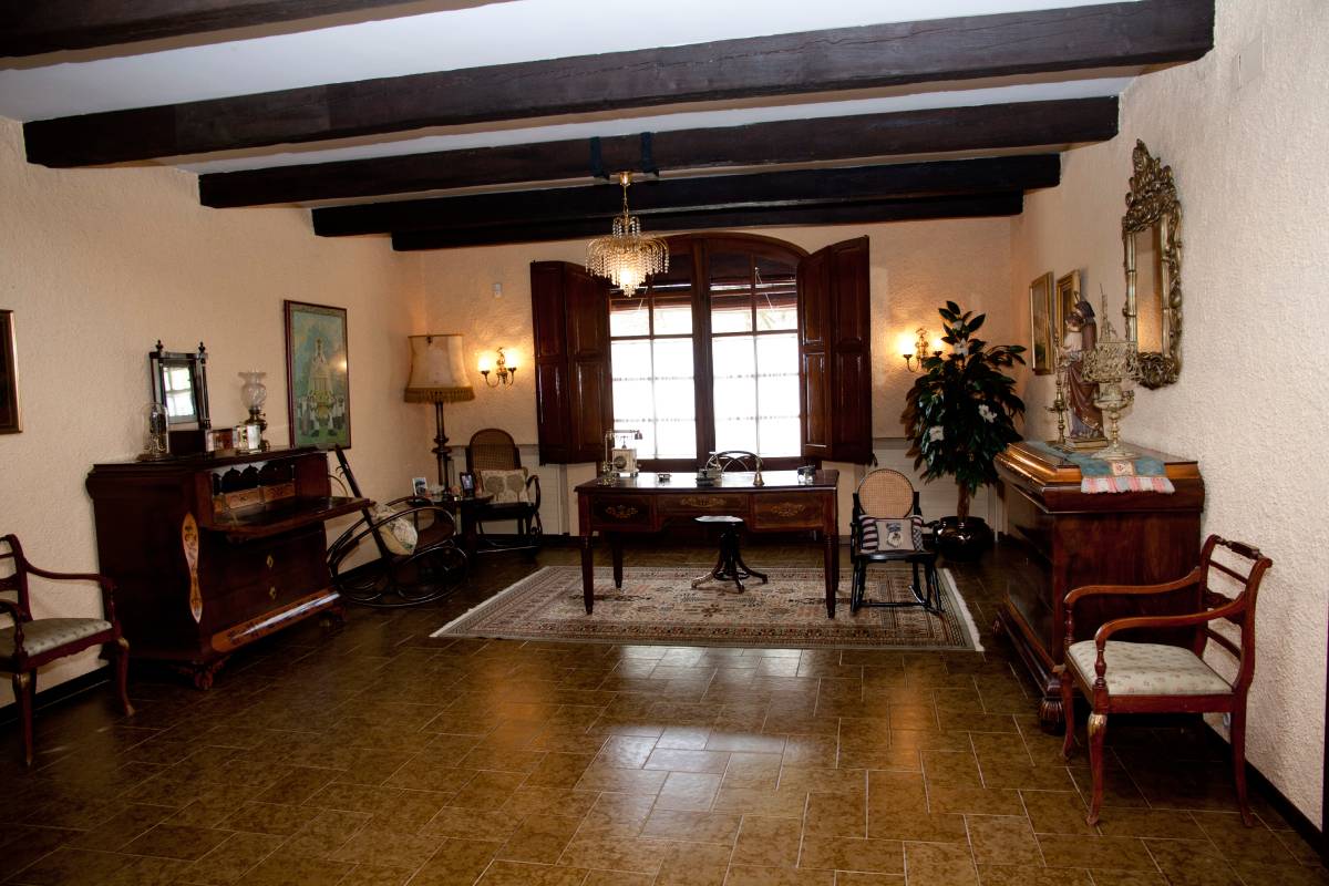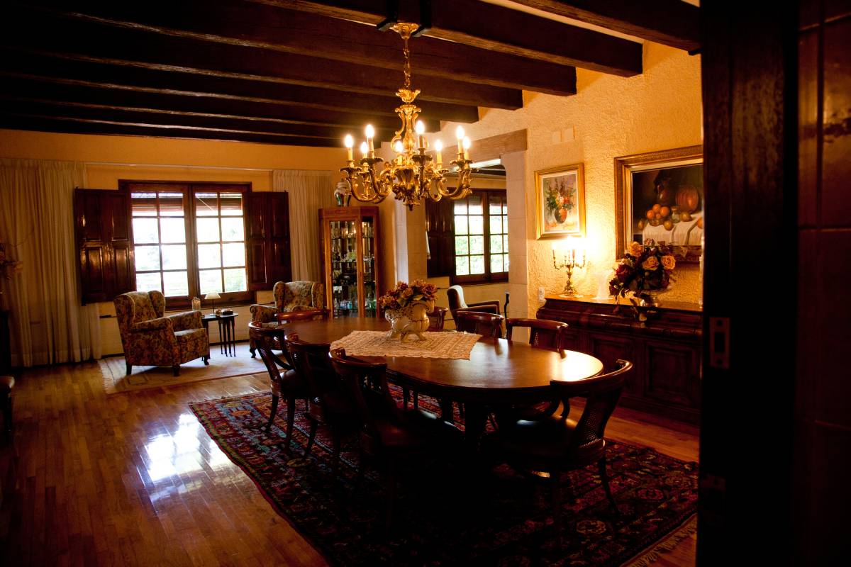 La planta baixa de 500 m2 consta d´un ampli rebedor d´uns 30 m2, una escala de pi envellit, saló-menjador que enllaça amb la cuina i celler. L´altra part consta d´una biblioteca-despatx, 2 grans sales: 1 sala d´estar i 1 sala polivalent amb llar de foc, zona de nit amb 3 habitacions dobles, 1 bany complet amb banyera, cuina i un gran garatge per a 2 o 3 vehicles. Annex tenim la casa dels cuidadors masovers amb entrada independent amb: gran menjador, cuina i 3 habitacions: 2 dobles, 1 individual, traster i bany complet.
